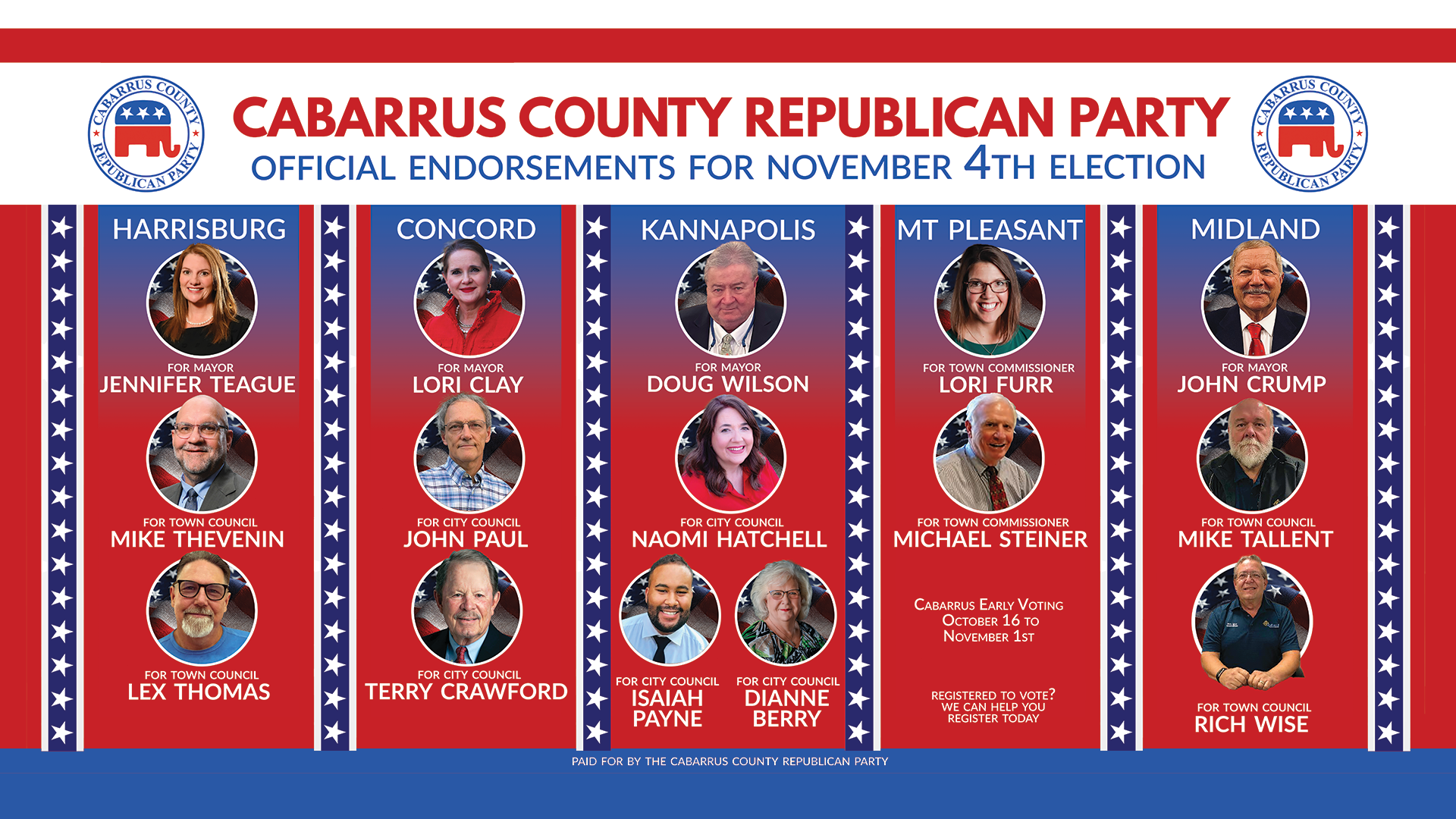 Cabarrus County registered voters may only vote on Election Day at their assigned polling place. This differs from early voting, where eligible individuals may cast a ballot at any early voting site in their county. Appearing at the wrong precinct, failing to be a registered voter, or failing to present a photo ID on election day will require the voter to submit a provisional ballot. After Election Day, election officials will review the details of the provisional ballots. Only if a provisional application is approved will the voter’s provisional ballot be removed from the sealed envelope and their ballot counted.